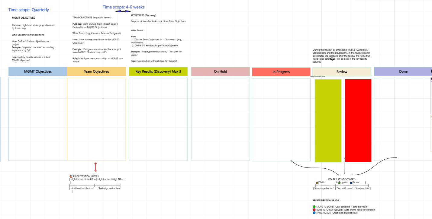 | C. Invite & Context | N/A | Flow Master | Invite the core team and clearly state the single objective: “Derive and prioritize the top 3 Key Results for this quarter’s MGMT Objective.” |