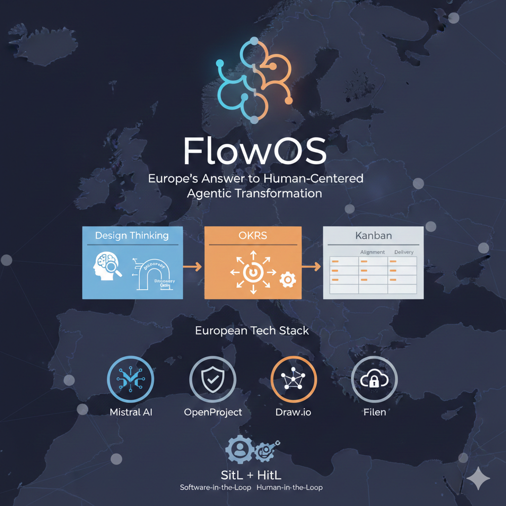 FlowOS represents more than a framework—it’s Europe’s declaration of independence in the age of AI transformation. By combining proven methodologies with sovereign infrastructure and human-centered AI, it offers a path where organizations don’t have to choose between efficiency and humanity, between innovation and sovereignty, between transformation and stability. They can have all of it, but only if they’re willing to break free from the gravitational pull of Silicon Valley’s transformation-industrial complex.