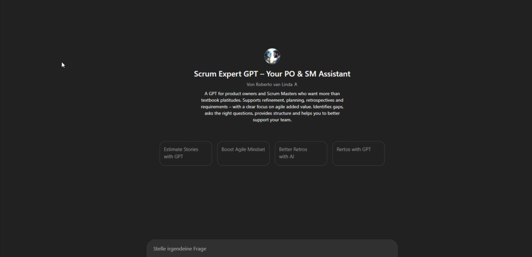Explore our custom GPT and experience how agility and AI can truly be great companions in your Scrum journey! Here you can open the GPT: https://chatgpt.com/g/g-688101ce2a6c819196fa2d97cbad044c-scrum-expert-gpt-your-po-sm-assistant